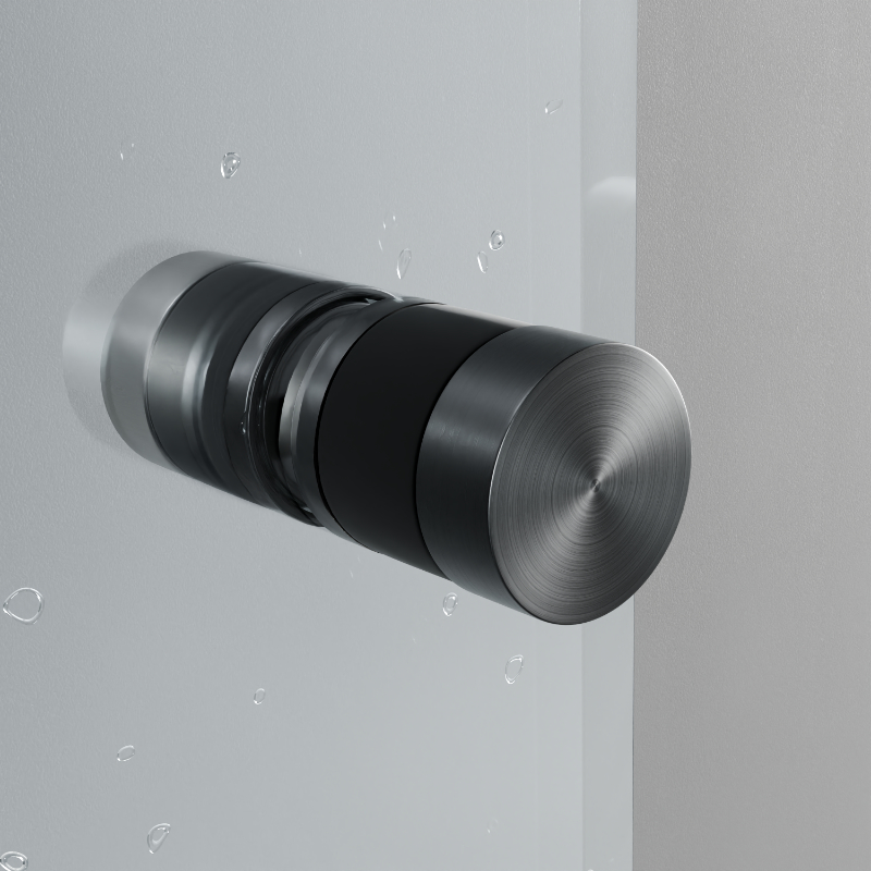 Wygodny, minimalistyczny uchwyt w kolorze nawiązującym do profilu kabiny, o okrągłym kształcie, wykonany z polerowanej stali nierdzewnej. Posiada gumową wstawkę antypoślizgową, dzięki której otwieranie i zamykanie drzwi staje się jeszcze bardziej komfortowe